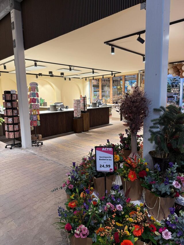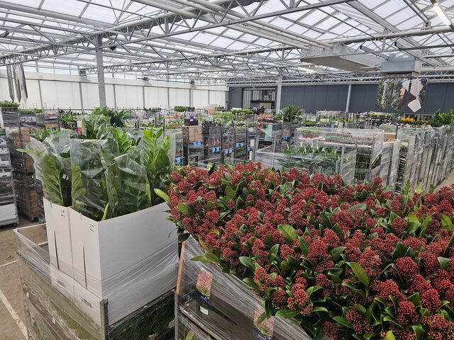 De laatste karren staan op hun plek, de hal is gevuld met kleur en de geur van vers groen.